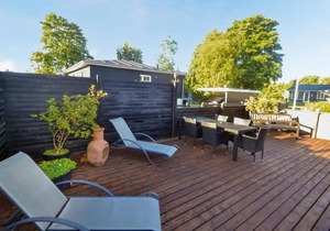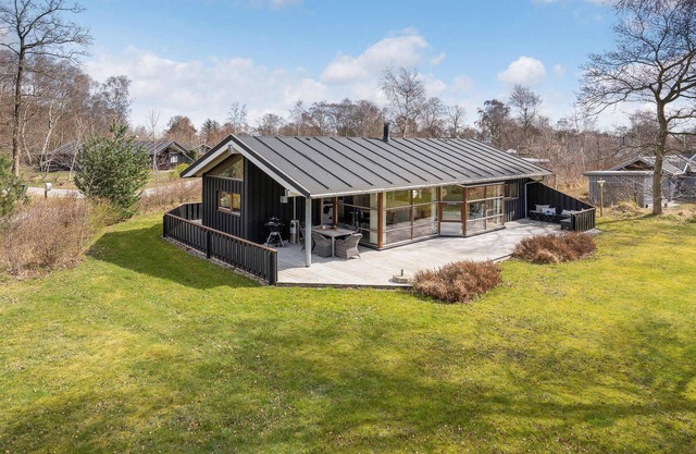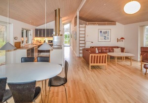 Due to its location in a very popular cottage area and within walking distance of one of Denmark's best swimming beaches, this house is suitable for a wonderful vacation all year round. On the good wooden terraces on the sunny sides of the house you can enjoy cozy vacations and the meals of the day together to the fullest. The house is very well furnished with good rooms and nice bathrooms (whirlpool, sauna). If you like jogging or cycling, you can do it in the wooded nature areas of the surrounding area and the sea.