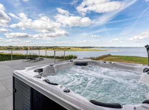 The view comes into its own when you relax in the large outdoor whirlpool or enjoy the view of the fjord, nature and the many local birds in the outdoor sauna. Afterwards, cool off under the outdoor shower or use the cold tub, which is located right in front of the steam cabin and the infrared sauna. From the large sauna you can also enjoy a good view of the fjord. You can also challenge each other to a mini-golf tournament, right in your own garden. Clubs and balls are available. You can order a towel and bed linen package for a fee.