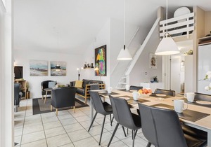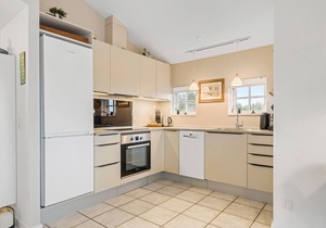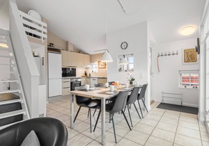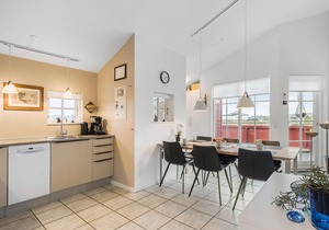 Situated close to the nature reserve around Nr. Lyngby lighthouse, your cosy stone house with thatched roof offers you an ideal getaway in the middle of a picturesque landscape. You can expect tasteful furnishings that create a cosy atmosphere with warm colours and high-quality materials. The spacious living area with cosy seating invites you to relax. Enjoy the warmth of the open fireplace, which creates a magical holiday atmosphere, especially on cooler evenings. The well-equipped kitchen has everything you need to prepare delicious meals. From the dining area, you have a beautiful view of the surrounding countryside through the large panoramic windows.