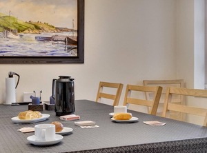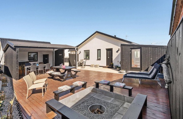 In the harbor town of Thyborøn, this beautiful vacation home welcomes you. The comfortably furnished interior makes a bright, friendly impression and invites you to feel at home. Enjoy the quiet atmosphere of the living room and spend cozy evenings in front of the fireplace. Everything is ready here for relaxing vacations in togetherness. In nice weather you can sit down with a freshly brewed coffee in the garden furniture and watch the flights of seagulls.