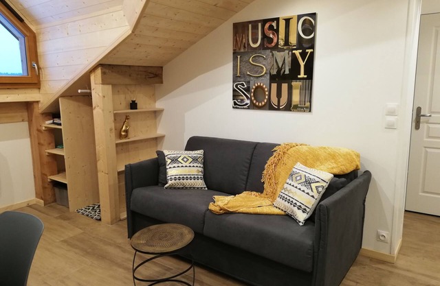 Located at the foot of the slopes and 5 minutes from the center with its shops, Well exposed with a beautiful view of the ski slopes, the Margeriaz and Belledonnes.