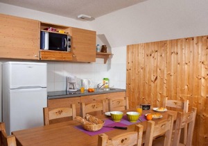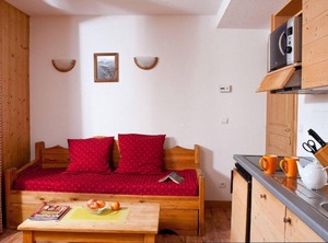 Situated in the heart of the village of Feclaz, Alps, France, 300m from the Tourist Information Office and from the departure of the alpine skiing pistes, the residence Les Chalets du Berger***, La Feclaz, Alps, France comprises of 40 traditional wooden chalets with 90 accommodations and offer comfort and high standard facilities such as heated indoor swimming pool (6x12), sauna, outdoor car park, ski lockers, welcome reception. Each apartment is decorated with care and perfectly equipped. Surface area : about 25-34 m². Ground floor. Living room with 2 pull-out beds. Bedroom with double bed or 2 single beds. Sleeping area with 2 bunk beds. Kitchen with dishwasher, microwave, cooking rings, fridge. Bathroom with WC. Balcony OR Terrace. The beds in elevation are not suitable for children under 6 years.