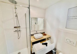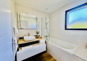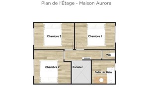 First floor : 3 bed rooms (2 large beds 160 cm, 1 bunk bed 90 cm), separate toilet, bathroom (bathtub).