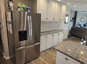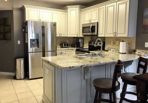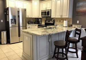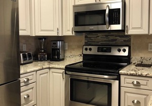 * Well stocked kitchen with granite counters, stainless steel dishwasher, stove, oven, microwave and refrigerator with ice and water dispenser.