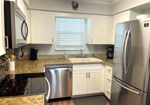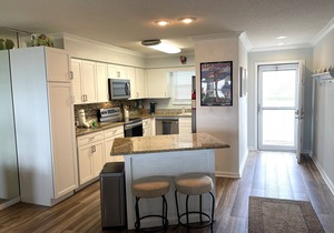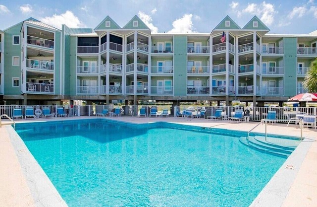 Jubilee Landing is a family friendly complex. Unit 210 offers two bedroom/two bath with a sleeper sofa, sleeping six. The condo living, dining and kitchen area is an open concept. Dining at the table for six or at the bar. TV's located in every room, large 52" in living with cable and wifi. The master has a king size bed with an onsuite bath featuring a beautifully tiled shower (recently redone) and washer/dryer located in master closet. The second bedroom has twin beds with bath access from the hall.