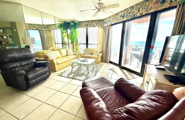 The private 400 square foot balcony features an outdoor grill with sink and hot tub which allows for you to cook and relax with the unobstructed views of the pristine Gulf Of Mexico. The balcony is accessible from the Living Room and the Master Bedroom.