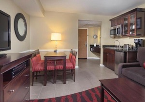 Conveniently located off Interstate 5, this all-suite Anaheim hotel features an outdoor pool and 2 hot tubs. All air-conditioned suites offer free WiFi and. Shuttle service to Disneyland is also available. A satellite TV, an iPod docking station, a CD and DVD player, a dining table and a hairdryer are included in all of the comfortable suites at Peacock Suites. Suites also offer kitchenettes with a microwave, a fridge and tea and coffee-making facilities. Peacock Suites Anaheim offers a reception desk where guests can get information and pickup tickets for local attractions. For convenience a gift shop, a guest launderette and a business center with fax and photocopying services are also located on-site. Anaheim Convention Center is 1 mile from the hotel. Knott’s Berry Farm is 12 minutes’ drive away. Long Beach Airport is 20 miles away. The resort will be undergoing construction from Sep. 9, 2024 through Oct. 11, 2024. During this time, entry to parking and the guest registration area will be affected. Additionally, you may encounter noise, dust, odor, and work crews on-site during business hours. Dates are subject to change.
