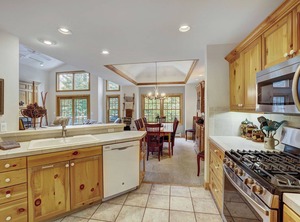 With three bedrooms and 3.5 baths, this townhouse comfortably accommodates up to seven guests. Upstairs, the master suite features a king bed, flat-screen TV, and a luxurious en suite bathroom with a deep jetted tub and separate shower. A loft area with a desk and a twin-size sleeper sofa provides a perfect workspace or additional sleeping space for a child. The lower level hosts two queen bedrooms, each with its own flat-screen TV and private bathroom.