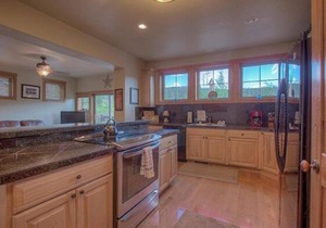 AMENITIES – This spacious home offers two master suites, open-concept living, kitchen, dining areas, and a large family room. The west facing deck provides views of Breckenridge Ski Area, the Ten Mile Range, and French Creek. The spacious floorplan and vaulted ceilings invite natural light into the space, and the layout offers plenty of room for everyone to spread out. After an adventure-filled day, the whole family will relish the change to enjoy a movie on the large flat-screen TV in the recreation room downstairs. A family dinner will be in order on the deck in the summer while taking in the beautiful surrounding landscape.