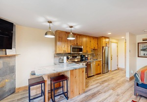 You can avoid the gondola lines when you stay with us at the Scandinavian Lodge! Located only steps from the ski mountain, this 2 Bedroom, 2 Bathroom condo is located on the ground floor. You will be able to enjoy evenings in front of the gas fireplace and flat-screen TV.