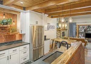 Sleeping Arrangements: Primary King Suite, Twin sleeping nook in the upper bedroom (adjoining Primary Suite), Queen + Twin Bunk Beds in Bunk Suite. Queen sleeper sofa in living room. Sleeps up to nine guests.
