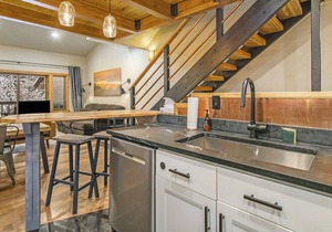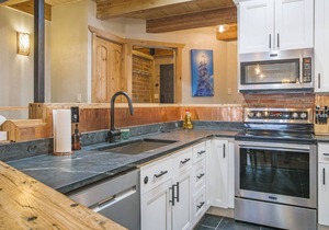 Enter into Winterwood 3 and immediately take in the modern design aesthetic including in the updated kitchen, bohemian living room and open dining room. Rest your head in the gorgeous bedrooms including a Primary King Suite on the upper level, Twin sleeping nook off the Primary Suite that shares an attached ensuite bathroom and a lower level Bunk Suite with Queen and Twin bunks and private ensuite bathroom. All the beds have cozy bedding fitting into the gorgeous Santa Fe design feel. Relax after a long day of skiing in the private on-site sauna or take in the surrounding nature off the private deck with seating for four. This modern townhome has everything your group needs for a hip vacation with easy access to world-class skiing and mountain biking.
