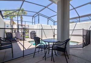Private screened pool with loungers & dining area