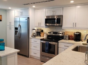 Relax, rejuvenate and enjoy the scenery from floor to ceiling windows in our living room and master bedroom or our fully furnished lanai! The views from our 17th floor unit are truly breathtaking - see our photos for actual views. Entering our condo, you'll feel like you've been upgraded to oceanfront at a fancy hotel. There are sweeping unobstructed views of the gulf and beach from our lanai. We've furnished the lanai with high top bistro tables and chairs so there is no looking through the railing as you sip your coffee and eat your meals. We've rented before so we know what guests want. There is no cutting corners. Our condo is stocked with every extra and amenity you can think of for your comfort and pleasure, as well as ours, including pickleball equipment for four. Go ahead and compare. We've already hosted one couple married on the beach and returned for their one year anniversary and four honeymoon couples as a result of our romantic views and premium features. New kitchen renovation done September 1, 2020! For those who know South Seas, our entire kitchen is renovated and dividing walls removed. We've replaced most of our lighting with eco-friendly LED lighting. Recycling is available on the first floor of our building. Many guests take advantage of our great WiFi coverage to keep up with work by doing some remote work during their stay.