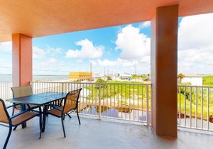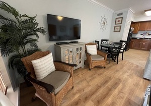 The master suite features a comfortable queen bed, and the living area includes a queen sleeper sofa for additional guests. Two full bathrooms add convenience and comfort during your stay. Enjoy peaceful mornings or sunset evenings from the balcony, soaking in the tranquil Gulf views.