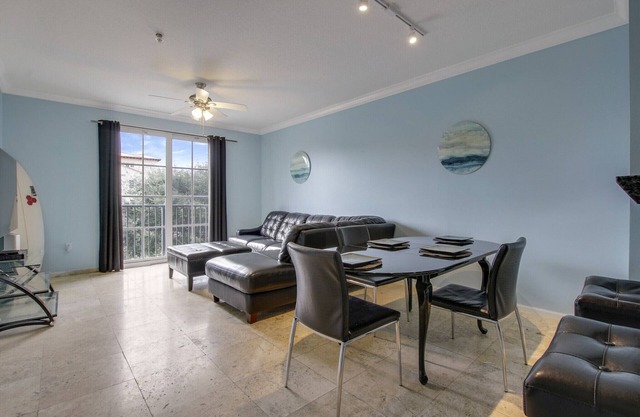 Beautiful 2-bedroom apartment in the heart of CityPlace across from the Kravis Center and the Palm Beach County Convention Center. Fully equipped with Wi-Fi, 4K TV, full-size washer & dryer, bed linens, towels, kitchen equipment, building amenities, such as pool & gym. The apartment has been recently redesigned with beautiful finishes and furniture for a premium stay. It can accommodate up to 6 guests with a brand-new Sealy Posturepedic sofa bed in the living room. One covered parking spot is included in the gated garage, with a secured walkway, with direct access to the condo and City Place. The city also offers a FREE, in-town trolley service. You are also centrally located, where you can just walk to several great restaurants, shops, theatre, bowling, and grocery store.