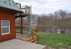 There are 3 units available in the River House, with this private studio occupying a portion of the 1st floor. The studio has its own dedicated large deck for entertaining, just a few steps away, that affords wonderful views of the river. There is not a direct view of the water from the room. Hickory hardwood floors shine throughout with custom pine doors and cedar closets. This new construction includes a kitchenette with microwave oven, refrigerator, and coffee maker. This cozy studio has a large full bath with tub/shower combination, a queen size bed and a comfortable convertible sofa that can sleep 4 adults. There is also free access to a full-size washer and dryer. Pets are welcomedat an additional fee but must be crated when unattended.