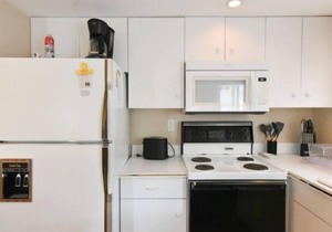 Prepare tasty meals in the modern kitchen, appointed with an array of helpful gadgets. A starter supply of dish soap and paper towels are provided for your convenience. When it’s time to eat, share your culinary creations around the table for four in the dining area.