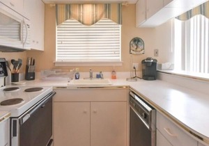 Your single-level rental features coastal decor, comfy furnishings, and a well-appointed kitchen. The fenced backyard offers a private alfresco hideaway. A large sectional provides plenty of plush seating around the 31” TV in the living area. On quiet afternoons, relax with a new book in the armchair.