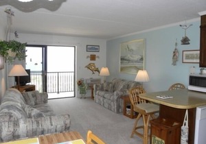 Sheer comfort in this popular mid-rise. Well appointed one bedroom, one and a half bath and two bedroom, two bath units. Amenities include an oceanfront balcony off living room-dining area, modern kitchen, washer and dryer. The one bedroom units have air conditioning units and one parking space. The two bedroom units have central air and two parking spaces. The building is equipped with an elevator. This unit features direct access to beach from the balcony and a view of ocean over the sand dune. Oceanfront units don't last long - book your vacation today.