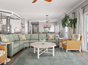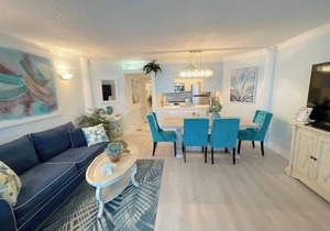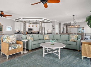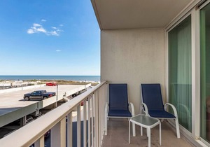 Jumbo sized Condo: If one word could characterize this condo it would be spacious. From the entrance portico, to very large great room area, to the master bedroom, the huge balcony, this unit is much larger than most condo's even built in the past 5 years. That means room for your extended family, or to split the unit with another family without the cramped tripping over others that often happens in smaller condos. With beach block property so expensive it is fairly rare to find such a spacious condo in a new building so close to the Beach. What a great combination! Other features include the utility room with full-sized washer and dryer, making quick work of dirty clothes. The balcony is 4x the size of most OC condos in that it spans the full length of condo on 2 sides and 2 levels. It has 12 chairs to enjoy the out doors and ocean watch. Several smaller serving tables for drinks. As you enter to get the feeling of being able to spread out. You are just 150 yards from the ocean, so you can have a wonderful beach vacation!
