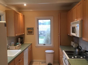 This little Peace of Haven offers spacious comfortable accommodations including a pleasant master bedroom with a king bed, adjacent private bathroom, and access to a small private deck via French doors. The original living room of the house is a large, private, high ceilinged space featuring a kind sized bed and access to the front patio. The great room, with views of the lake and access to the rear patio and driveway (off street parking) has a queen hide-a-bed, in addition to living and dining furniture.