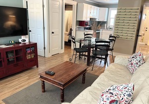 **Note that Cottage 1 shares a wall with the far hallway corner of the Main House but as of 2022, we've added insulation and other measures to ensure noise transfer is drastically minimized. Cottage 1 and 2 used to have an interior door that locked but it was the source of noise transfer so in Spring of 2022, we closed up that door and added insulation in the units to minimize noise transfer. Cottages 4 and 5 share no walls as they stand alone on the property. All cottages have a pull out couch, and the Main House has 2 pull out couches, one in each king bedroom.