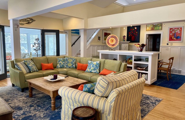 Come explore Elephant Walk, a dog-friendly compound, walkable to beach and town, designed to make memories for your group. It provides multiple gathering spots both outside and in while ensuring ample privacy at the same time. Our Main House offers giant living spaces to accommodate the whole group and provides 4 very large bedrooms and 3 baths. On the same grounds, there are 5 smaller cottages that offer full kitchens/bathrooms/living spaces and house 1-2 bedrooms each. If you would like to rent the Main House as well as 1+ cottages, please see our VRBO links to the other cottages or message me to check on availability. Host your retreat, wedding party, or reunion here for an unforgettable experience!