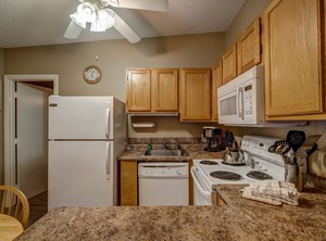 Inside, you’ll find a comfortable setup that’s ideal for families or small groups. The primary bedroom features a queen bed and private en-suite bath, while the second bedroom includes two twin beds. A third bedroom with twin bunk beds is a favorite for kids, and the living room offers a sleeper sofa and space to unwind after a day outdoors. The kitchen is stocked with cookware and essentials, making it easy to whip up casual meals and snacks. Wi-Fi, towels, and linens are included for your convenience.