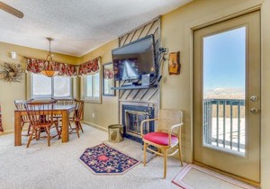 The condo is on the top level, the 3rd floor, which provides the best views. You do have to take the stairs, so please be sure your group can make it up two (2) flights of steps. The unit is one level and has a king master suite with an HD Smart TV and an ensuite bathroom with a tub and shower. The second bedroom has two twin beds and an HD Smart TV. A central hallway bathroom with a tub and shower and a laundry closet with a stacked washer and dryer serves the guests. The full kitchen features a fridge/freezer, dishwasher, oven and cooktop, microwave, and coffee maker. The kitchen is open to the great room, with a dining area with a 4-seat dining table, and the living area features a new sofa that provides a full-size sleeper, a wood-burning fireplace, a large HD Smart TV, and other comfy seating.