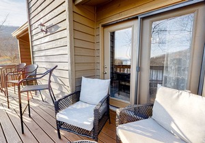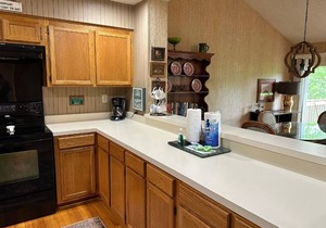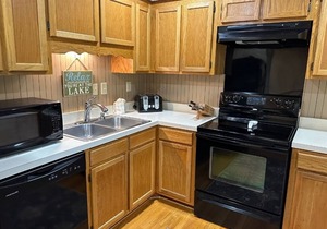 This condo also includes cable TVs in 2 of the bedrooms, hair dryer, washer/dryer, iron/ironing board, microwave, dishwasher, drip type coffee maker, and toaster. The master bedroom has a queen size bed and private bath with a new shower. The master opens to a private deck with a high-top table so you can start your day with a cup of coffee and a mountain view. The second bedroom has a queen bed, sharing a hallway bath with the third bedroom, which has two twin beds and a rollaway twin bed. The comfortable size, with easy access to lake, pools, restaurants and golf courses, make this a great choice for a family vacation rental. Although not equipped as handicap accessible, this condo has no entry step, plenty of close parking, and everything is on one level. The master bath shower has just been redone and has only a small lip, for easy access for anyone with limited mobility. The unit is perfect for families, including those with elderly members joining them for the family vacation.