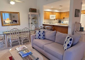This is a tastefully decorated, large, three-bedroom condominium, that has new owners, new amenities and is a super option for families. Plus, it’s located just a 5-minute drive from all the amenities, including the beach, pools, and Wellness center. Quail Cove 1626 offers all the comforts of home, including a gas stone fireplace in the living room, and it has beautiful mountain views from a deck with a screened-in porch with plenty of outdoor seating. A new wooden dining room table with seating for 6 is in the dining area. The dining room area opens to the living room, which has plush seating for up to 8 on hardwood floors. A new 55" Smart TV allows guests to access their Netflix, Amazon or Hulu accounts for indoor entertainment. Also, there is newly-added high-speed wireless Internet.
