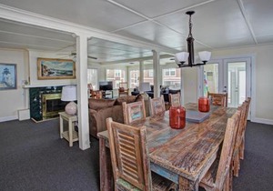 In regards to sleeping areas; three bedrooms are located upstairs all featuring queen-sized beds while the downstairs bedroom has one set of twin bunk beds and one twin bed. There is also a comfortable double-sized sleeper sofa in the living room that accommodates two guests! In addition you will find an inflatable twin mattress in the bedroom closet. Enjoy Satellite TV downstairs or watch a DVD upstairs in the bedroom. Need extra space for a few more? Rent the adjacent, newly-remodeled, Sand Dollar Cottage for a total capacity of 12 guests.