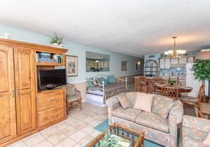 This condo is located in the family friendly Garden City Beach Area just south of Myrtle Beach. This two bedroom condo is in the 16 story high rise Royal Garden Resort. The Royal Garden Resort has a large outdoor and indoor swimming pool and a hot tub. Linens are included in the reservation.