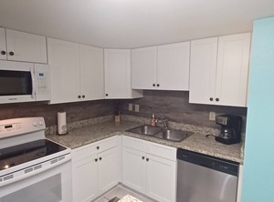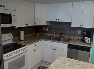 The bedroom has a king size bed, closet and dresser to provide ample storage space, and a private bathroom. The fully equipped kitchen includes a full size refrigerator, stove with oven, microwave, toaster, small appliances, pots and pans. Dishes, glassware and tableware are on hand. Linens are provided, beds will be made, some soap, paper towels and trash bags will be on hand to get you started. You will not begin your vacation by making beds or running to the store to get toilet paper immediately!