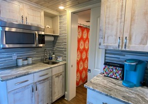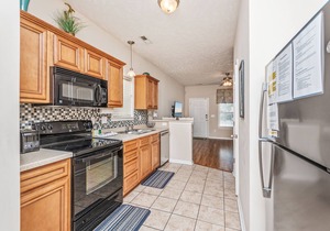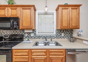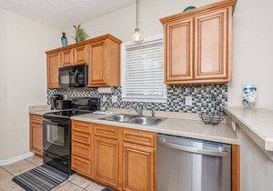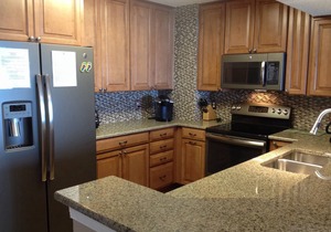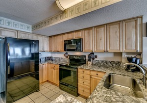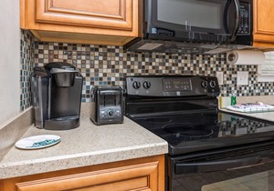 The gourmet kitchen is outfitted with cherry-wood cabinets, granite counters, refrigerator, dishwasher, stove, microwave, coffeemaker, a Shark hand vac and vacuum, etc. Other amenities include cable/satellite, complimentary wireless Internet access, telephones with voicemail, washer/dryer, and an iron and ironing board.