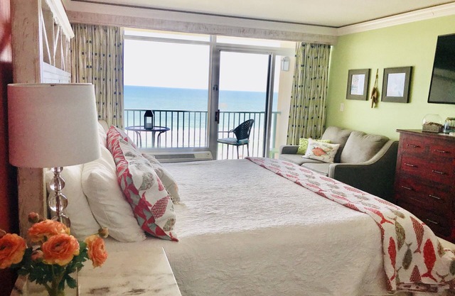 Welcome to our freshly painted 2BR/2BA oceanfront corner condo at the luxurious Anderson Ocean Club Resort & Spa in central Myrtle Beach. Our home is replete with a sofa bed couch with a 4" mattress, new King-size Mattress Set, 3 new digital and Smart flat-screen televisions, new dishwasher, high-end stainless steel Cuisinart cookware, and top-of-the-line furnishings and new flooring. The building is styled in Moroccan and Spanish Colonial architecture.