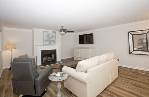 Newley renovated one bed, one bath in Pinehurst Manor. This beautiful 1x1 condo is located just off the traffic circle in the heart of Pinehurst which provides easy access to Pinehurst, Southern Pines and Aberdeen. Home is located on the back side of the building and requires steps. 1Queen and 1 Murphy bed. Home includes cable, wifi, washer and dryer, gas grill and drip coffee pot. Home has a lot of natural light from windows and Carolina room! This condo is perfect for a quick getaway in Pinehurst!