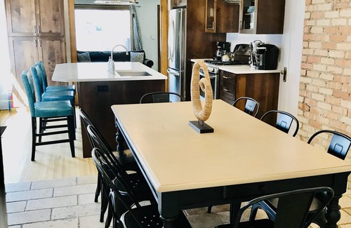 This is the main floor of a mother in law home. This main level floor is 1200 square feet, and built in the 1920s. For bigger groups or more space you can rent the whole home, main floor and basement. Making total 2400 square feet, 5 bedrooms and 4 bathrooms. Enter with keyless lock code. Two bedrooms, with plenty of closet space. Clean linens and towels provided. Furnace and central air and fans throughout the home. Two full bathrooms. En suite bathroom for master bedroom has a large shower. The second bathroom double vanity and shower with tub. Shampoo and body soap are provided. Full dine in kitchen with all your cooking needs. Coffee and tea provided. Living room has a three wonderful couches to lounge on. One couch that has a pull out queen size bed and other that can be folded flat into a full. Also have a pack and play if needed. Fiber internet, with up to 1,000 Mbps. Television in living room has streaming Netflix,Disney+,HULU,ESPN,Paramount, and more. Washer and dryer. Laundry detergent provided. Iron and ironing board in first bedroom closet. We ask on departure that the guest run the dishwasher, run used towels in washer and to take out garbage. This helps with a lower cost from the cleaning service that comes.