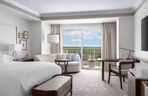Enjoy tranquil golf course views or watch the sunrise over the lake from two private balconies when you reserve an Executive Suite, 2 Queen Beds at The Ritz-Carlton Orlando, Grande Lakes. This stylish suite features a spacious living room perfect for entertaining guests, and a marble bathroom where you can start your morning with an invigorating shower or sink into a relaxing bath after a long day. Choose a suite with two Queen-size beds to customize this one-bedroom suite to your travel party's needs. The connecting Lake View, 2 Queen Beds guest room adds 480 square feet of space for up to four members of your party to stretch out in as well as an additional balcony to relax on. This Italian-inspired Florida resort offers an 18-hole golf course, a 40,000-square-foot spa, and 11 on-site restaurants. Included in the Daily Resort Fee is transfer service to area theme parks, including the Walt Disney World Resort 14.4 km away. A satellite 65-inch HD LCD smart television, free bottled water, and iPod docking station are included in all guest rooms at the Ritz-Carlton Orlando Grande Lakes. Each marble bathroom is stocked with bathrobe and slippers. Select rooms feature a private furnished balcony. Guests can take advantage of the two-mile bike trail or walk around the resort. Kayaks, tennis courts, and three outdoor pools are available as well. The Ritz Kids Club is available for younger guests. Dining options include a southern cuisine restaurant, Caribbean and Latin Fusion restaurant and spa café serving salads and smoothies. The Lobby Lounge offers afternoon tea and evening cocktails accompanied by sunset views. The hotel is 4.8 km from SeaWorld and 11.2 km from the Universal Orlando Resort. The Orlando International Airport is 16 km away. Shopping at the Mall at Millenia and Orlando Premium Outlets is within 10.7 km. Guests are required to show a photo identification and credit card upon check-in. Please note that all Special Requests are subject to availability and additional charges may apply. In the event of an early departure, the property will charge you the full amount for your stay. Please note pets 25 lbs or more cannot be accommodated. Please note only 1 pet per room can be accommodated. The resort fee includes: • Enhanced High Speed Guest Room Internet • Mountain Bike Rental at Grande Lakes Sports (two bikes, one hour/day/room) • Driving Range Privileges • Two Pool Floats at the JW Marriott® Lazy River Pool • Two Welcome Beverages per room • Tennis Court access (one hour/day/room) • Fitness Center Classes (one/day/room) • $50 print credit towards any Photography Concierge package