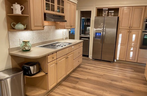 Huge, well-equipped 20’ kitchen with stainless steel appliances