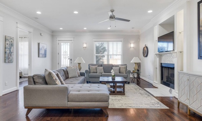 In Nashville's lively Edgehill area, this cozy house provides a great escape for your upcoming trip. As you step inside, you'll be greeted by a cozy living room, where you can unwind by the fireplace and enjoy the smart TV.