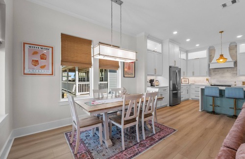 Enjoy many options for outdoor seating with Adirondack rocking chairs on the upstairs and downstairs patios, as well as a full outdoor lounge area that includes a table with built in fire pit! The view looking over the backyard is exceptional but if you want to get more up close in personal with the outdoor amenities, simply go through the gate in the backyard and you are steps away from the neighborhood pool and pond. Both are able to be utilized during your stay. The pond is ripe with fish, so get out there and throw some lines!