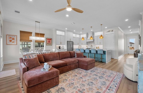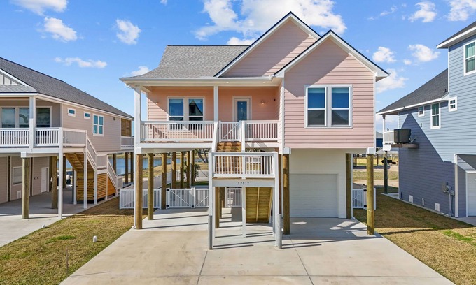 Stay comfortably in Galveston at this brand new 4 bed, 3 bath home! Enjoy complimentary Wi-Fi, pool and pond access right behind the house, and 2 outdoor fire pits with plenty of outdoor seating! Beach access is right across the street from the neighborhood entrance and there is an outdoor shower on the side of the house to wash off all of that sand from your fun day in the sun. There are plenty of comfy places to rest your head with bedroom options that include 1 king size bedroom, 2 queen size bedrooms (one with a twin size trundle under the bed), and a bunk room that houses 2 fulls, 2 twins and 2 twin XLs! With 3 full bathrooms there is more than enough room for everyone to get ready for the day! Hair dryers, shampoo/conditioner, and towels are provided in each bathroom. The house also has a stackable washer and dryer should families need to wash clothes and towels during your stay!
