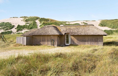 South of Hvide Sande and only 75 m from the sea you will find this beautiful luxury house on a 2000 m² dune and nature plot. The house is ideal for two families, as the bedrooms are divided into two areas, each with its own bathroom. In addition, there is still a sleeping loft for two people in each of these areas. The cozy living room with beamed ceiling and brick fireplace has a large glass section under the ceiling above the dining area. At the end of the living room and separated by a glass front is the pool room with 18 m² indoor pool and sauna. A beautiful terrace is located in front of the pool and living room. As a guest of this house you enjoy free admission to the museum Fiskeriets Hus and Hvide Sande.