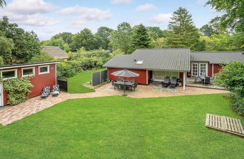 Here you will spend your vacation in a quiet area and not far from the beautiful beach Fjellerups. The cottage is particularly pleasantly furnished and spacious. There is even a sleeping loft here for your children. In the game room, in a separate building billiards and darts are available, here is also access to the sauna and solarium. On the covered terrace you can grill delicious food. And when the evening falls, it is sure to be really cozy in front of the fireplace. Among the many destinations are Djurs Sommerland, Randers Regnskov, Memphis Mansion - Elvis Museum and Kattegatcenter.