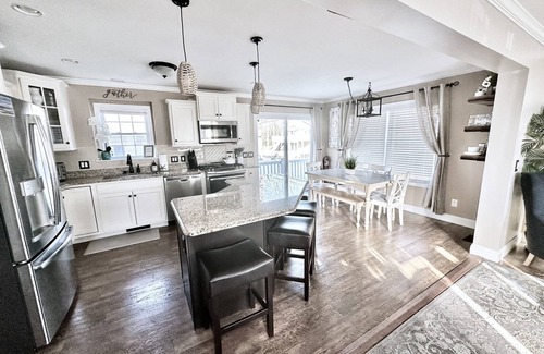 This home provides luxury design and qualities throughout. Everything in our home is on the first floor. The master has a private bathroom with a walk in shower with seat. The 2nd and 3rd bedroom share a full hall bath with a shower and bathtub. All mattresses were brand new in 2025. The living room, kitchen and dining room are one large open concept room. The living room has a floor to ceiling gas fireplace and the TV has YouTube live TV and streaming apps.