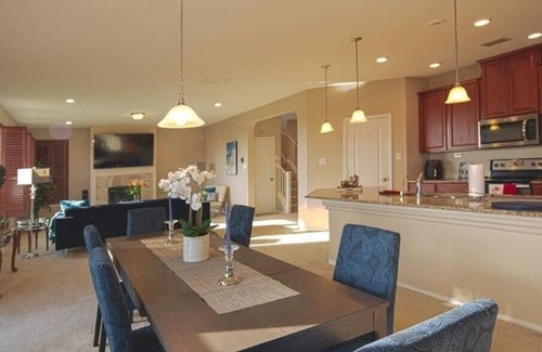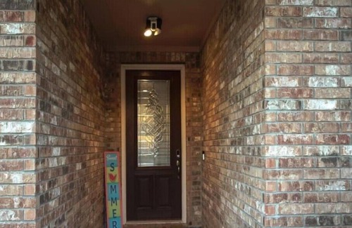 New house with a beautiful open-concept floor plan downstairs. Nicely modern designed with brand new furniture, appliances, towels, bedsheets, and all your kitchen/bathroom needs. Enjoy a comfortable working area, take a break walking outside peacefully, or unwind with a bubble bath in the upstairs oval master bathroom tub. Your little loved ones can enjoy some camping-in, in their cute little tent in the children's bedroom or their own tub in the second bathroom! A basketball stand is available in the garage for use in the driveway (A Note: Our strict HOA requires placing it back in the garage after you are done). When hunger strikes, satisfy your appetite with a good old Texas BBQ in the backyard for the whole family to enjoy, or cook up a feast in the spacious fully stocked kitchen!