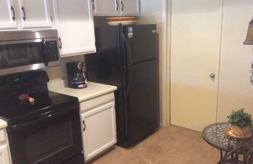The home has a large master bedroom with a queen size bed. The master bath has 2 separate vanities with a full length wall mirror. Spacious, walk in closet and newly renovated, glass shower enclosure.
