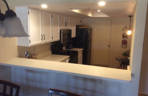 The living/dining area is a open concept with large glass dining table. New, flat screen TV with Air TV hookup. Open countertop into newly renovated kitchen with all appliances. Large pantry for food storage.